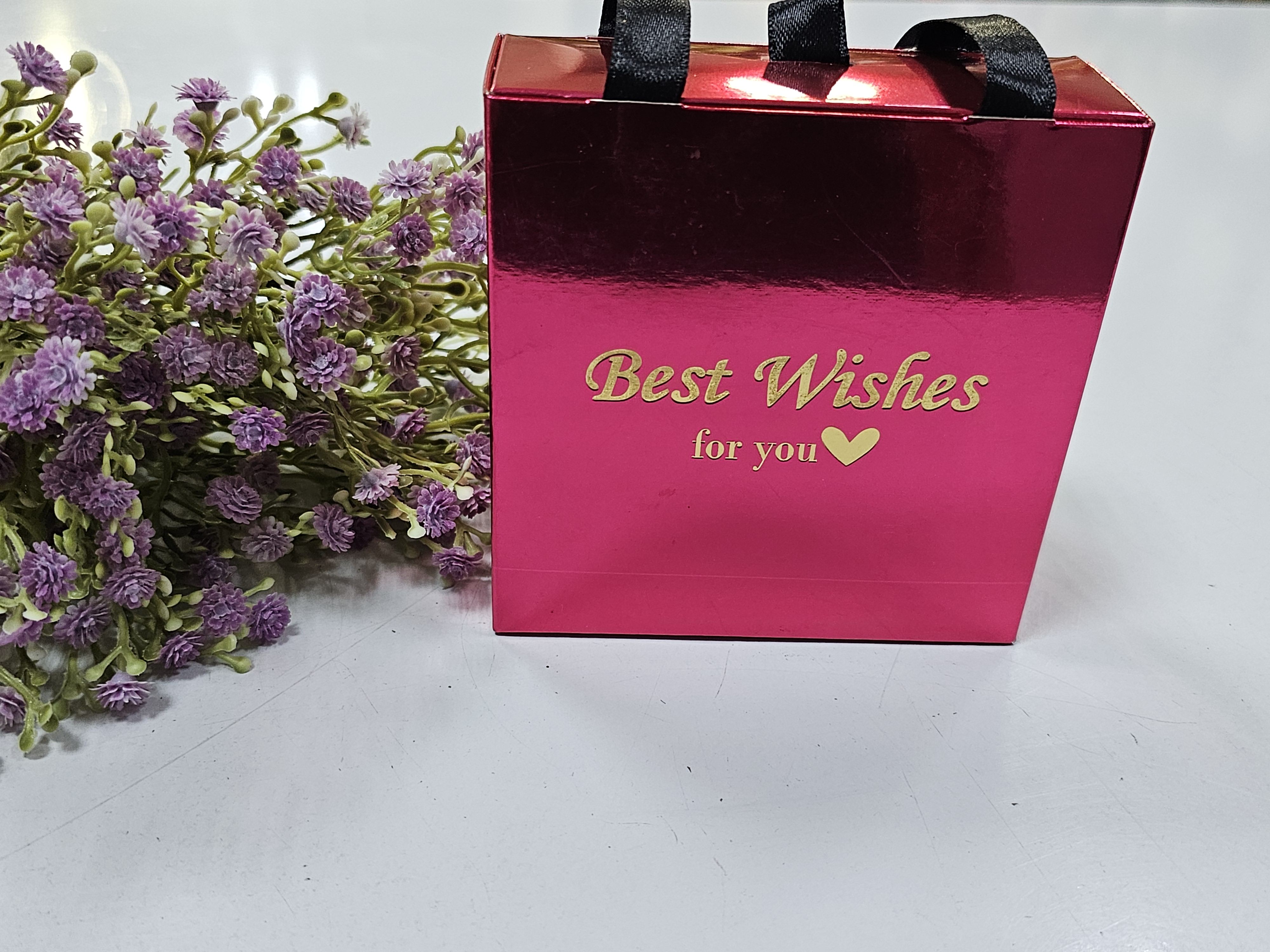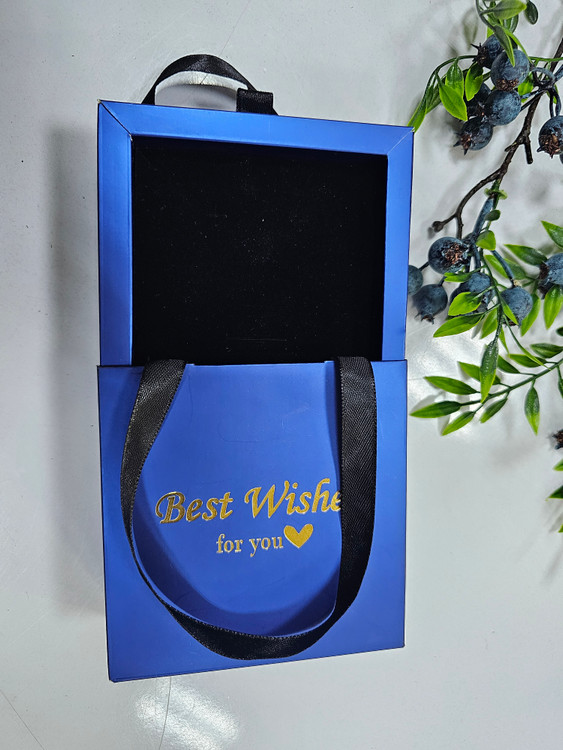 جعبه النگویی و نیم ست متالایز لوکس با ابعاد 11.3×11.3 و ارتفاع ۴.2 سانتیمتر، دارای فضای داخلی مفید 9×9 سانتیمتر. تولید شده از مقوای متالایز با جلوه درخشان، همراه با بگ ست همجنس. امکان طلاکوب و چاپ اختصاصی لوگو و برند برای طلافروشیها و مجموعههای جواهر فراهم است. انتخابی حرفهای برای بستهبندی النگو و نیم ست طلا، جواهر .