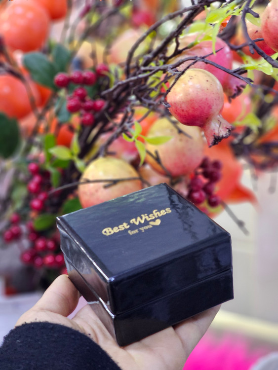 در داخل جعبه از ابر باکیفیت و نرم برای محافظت کامل از انگشتر استفاده شده و روکش بیرونی گلاسه با سلفون مات یا براق جلوهای شیک و رسمی به محصول میبخشد. این جعبه بهصورت طلاکوب عرضه میشود و در صورت تمایل مشتری، امکان طلاکوب لوگو یا برند اختصاصی روی جعبه وجود دارد؛ گزینهای ایدهآل برای طلافروشیها، جواهرفروشیها و بستهبندیهای VIP و برندینگ حرفهای.